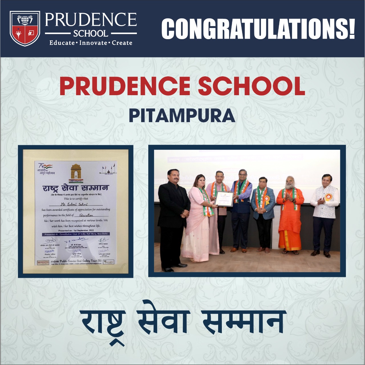 Prudence School Pitampura for Rashtra Sewa Samman that brings honour and recognition to school.
