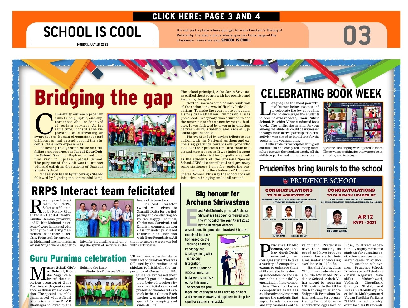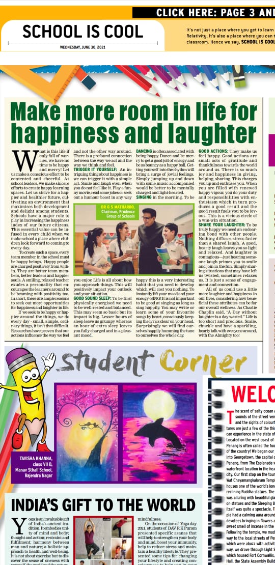 Prudence has always been a stand for HAPPINESS and WELL BEING of its students , faculty and its entire fraternity. On page no 3 of today's Times ...