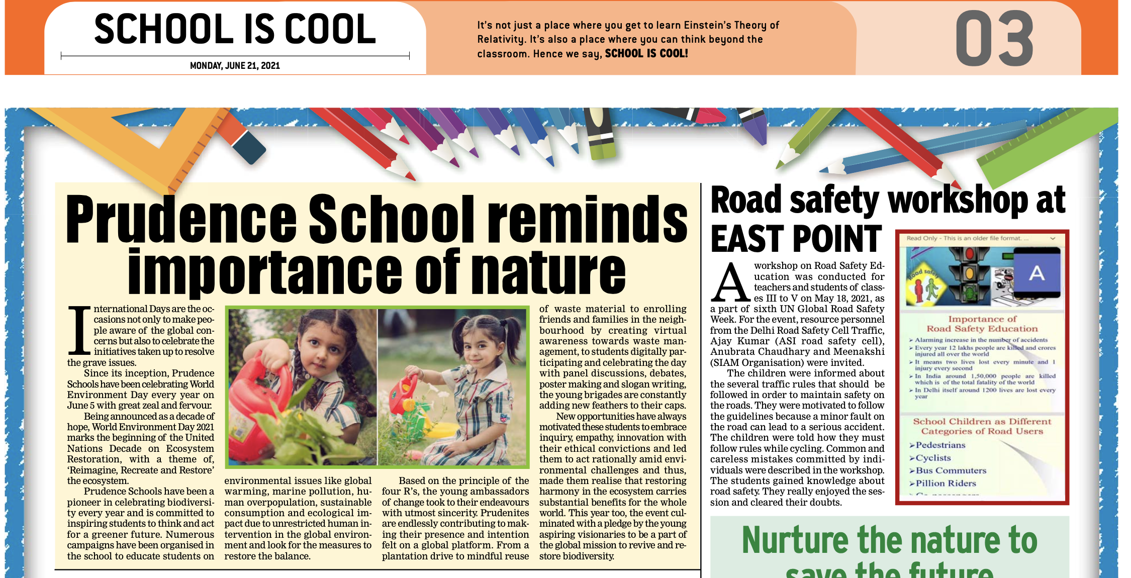 Prudence is committed to inspiring its students for a greater and greener future.Initiatives taken by them are well enumerated in the article on Page ...
