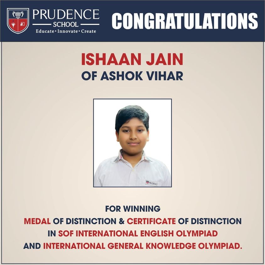 Ishaan Jain brings Laurels to Prudence School, Ashok Vihar"Work hard in silence. Let success be your......